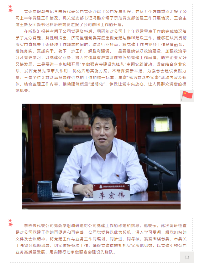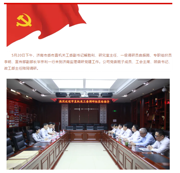 濟(jì)南市委市直機關(guān)工委調(diào)研組蒞臨濟(jì)南監(jiān)理指導(dǎo)黨建工作